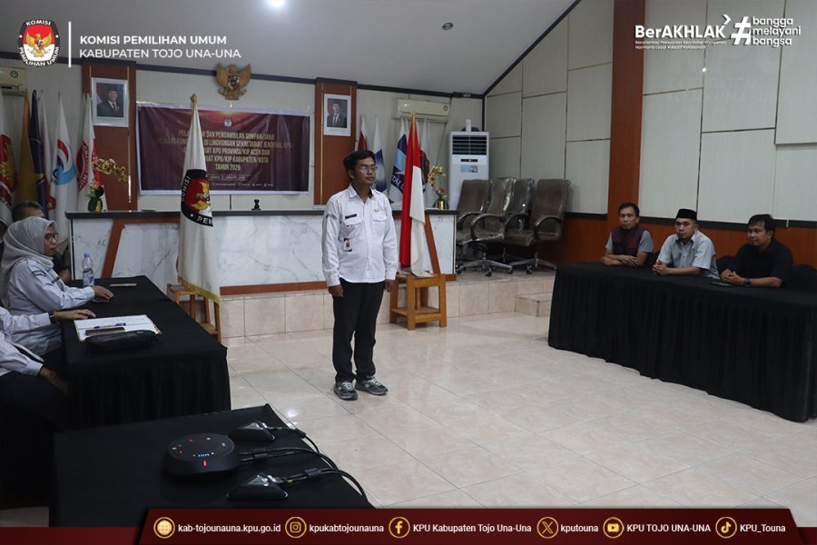 #Temanpemilih, Kamis, 22 Januari 2026 bertempat di Sekretariat KPU Kabupaten Tojo Una-Una Sebanyak 1 Pegawai ASN di lingkungan Komisi Pemilihan Umum Kabupaten Tojo Una-Una mengikuti pelantikan dan pengambilan sumpah/janji pejabat fungsional di lingkungan Sekretariat Jenderal KPU, Sekretariat KPU Provinsi/KIP Aceh, Sekretariat KPU/ KIP Kabupaten/Kota. Pengambilan sumpah/janji oleh Sekretaris Jenderal KPU Republik Indonesia, Bernad Dermawan Sutrisno yang dilaksanakan serentak se indonesia secara daring. Dalam kesempatan ini, beliau menyampaikan selamat kepada para pejabat yang telah diambil sumpah/janji dan mengingatkan agar semakin meningkatkan kinerjanya di masa mendatang. Turut hadir Ketua beserta Anggota KPU Kabupaten Tojo Una-Una didampingi Sekretaris KPU Kabupaten Tojo Una-Una beserta jajaran Kasubag KPU Kabupaten Tojo Una-Una. #KPUMelayani #KPUTojoUnaUna ....