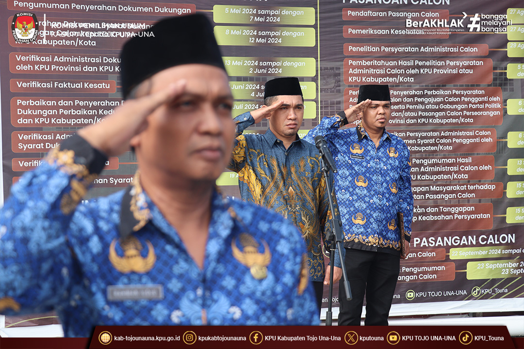 Bertindak sebagai Inspektur Upacara Ketua KPU Kab. Tojo Una-Una Ahdin L. Nondo. Hadir mengikuti Upacara Anggota KPU Kabupaten Tojo Una-Una Naser Lahay, Nidaul bersama jajaran Kasubag, ASN dan PPNPN Sekretariat KPU Kab. Tojo Una-Una.