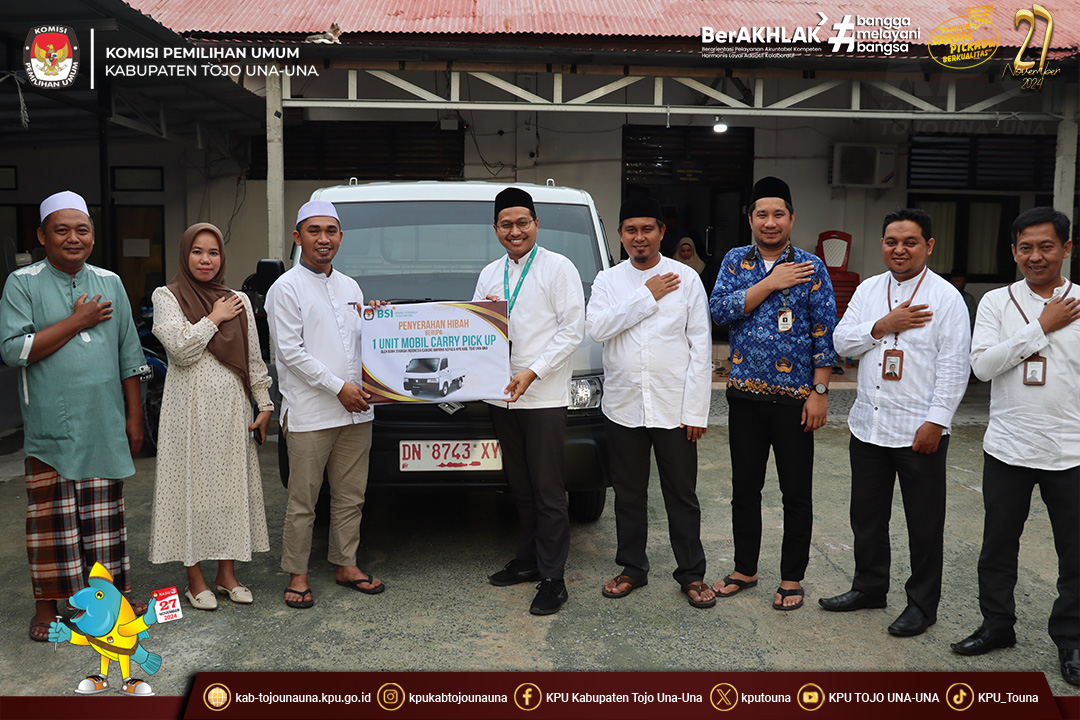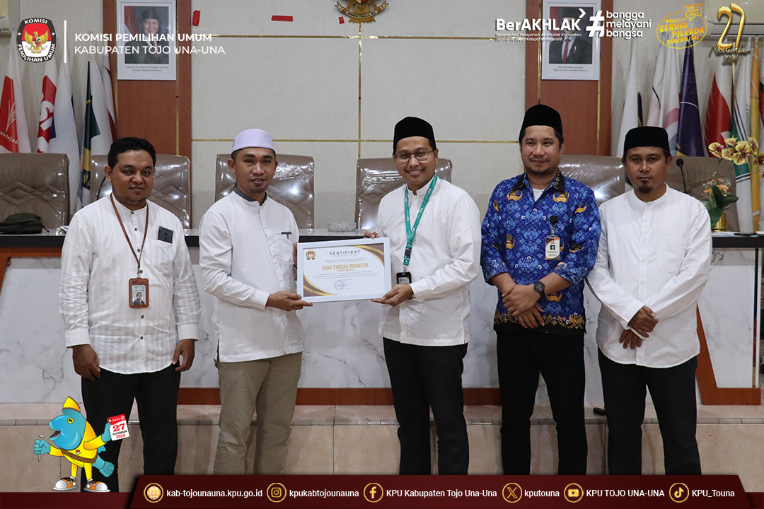 Turut hadir sebagai undangan jajaran Bank Syariah Indonesia Cabang Ampana, Bawaslu Kab. Tojo Una-Una, momen ini juga dirangkaikan dengan pemberian sertifikat penghargaan oleh KPU Kab. Tojo Una-Una kepada Bank BSI Cabang Ampana sebagai bentuk apresiasi atas peran dalam menyediakan layanan perbankan untuk mendukung kelancaran dalam proses pelaksanaan tahapan pemilihan Bupati dan Wakil Bupati Kab. Tojo Una-Una tahun 2024, serta penyerahan hibah berupa 1 unit mobil pick up oleh Bank BSI Cabang Ampana kepada KPU Kab. Tojo Una-Una.