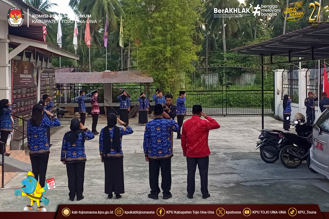#TemanPemilih, Komisi Pemilihan Umum kabupaten Tojo Una-Una melaksanakan Upacara Peringatan Hari Kebangkitan Nasional ke-117 yang mengusung tema "Bangkit Bersama Wujudkan Indonesia Kuat" di Lingkungan Sekretariat KPU Kab. Tojo Una-Una. Selasa, (20/05/2025).