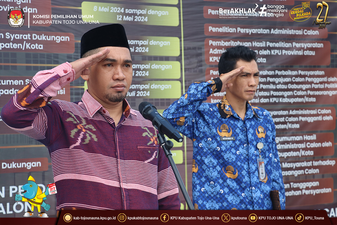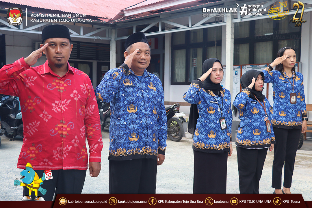 Bertindak sebagai Inspektur Upacara Ketua KPU Kab. Tojo Una-Una Ahdin L. Nondo. Hadir mengikuti Upacara Anggota KPU Kabupaten Tojo Una-Una Arpan Patanda bersama jajaran Kasubag, ASN dan PPNPN Sekretariat KPU Kab. Tojo Una-Una.
