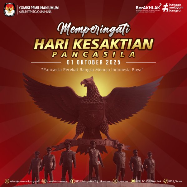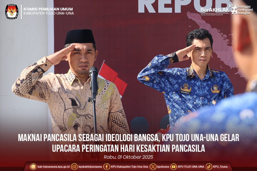 #TemanPemilih, Komisi Pemilihan Umum kabupaten Tojo Una-Una melaksanakan Upacara memperingati Hari Kesaktian Pancasila yang mengusung tema "Pancasila Perekat Bangsa Menuju Indonesia Raya" di Lingkungan Sekretariat KPU Kab. Tojo Una-Una. Rabu, (01/10/2025).