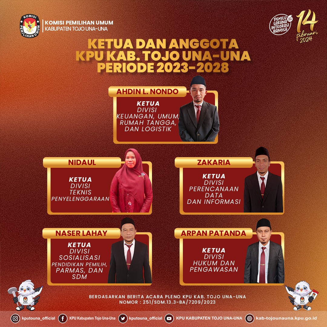 Bertindak sebagai Inspektur Upacara Ketua KPU Kab. Tojo Una-Una, Ahdin L. Nondo. Hadir mengikuti Upacara Anggota KPU Kab. Tojo Una-Una Divisi Hukum dan Pengawasan, Arpan Patanda, Anggota KPU Kab. Tojo Una-Una Divisi Sosdiklih, Parmas dan SDM, Naser Lahay, Anggota KPU. Kab. Tojo Una-Una Divisi Teknis Penyelenggaraan, Nidaul, Anggota KPU Kab. Tojo Una-Una Divisi Perencanaan, Data dan Informasi, Zakaria, Sekretaris KPU Kab. Tojo Una-Una, Moh. Fitra Akbar beserta jajaran Kasubag, ASN dan seluruh PPNPN Pegawai Sekretariat KPU Kab. Tojo Una-Una.