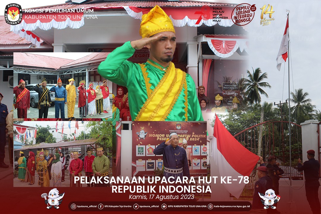 #TemanPemilih, Komisi Pemilihan Umum kabupaten Tojo Una-Una melaksanakan Upacara Peringatan Hari Ulang Tahun ke-78 Republik Indonesia yang mengusung tema "Terus Melaju Untuk Indonesia Maju" di Lingkungan Sekretariat KPU Kab. Tojo Una-Una. Kamis, (17/08/2023).
