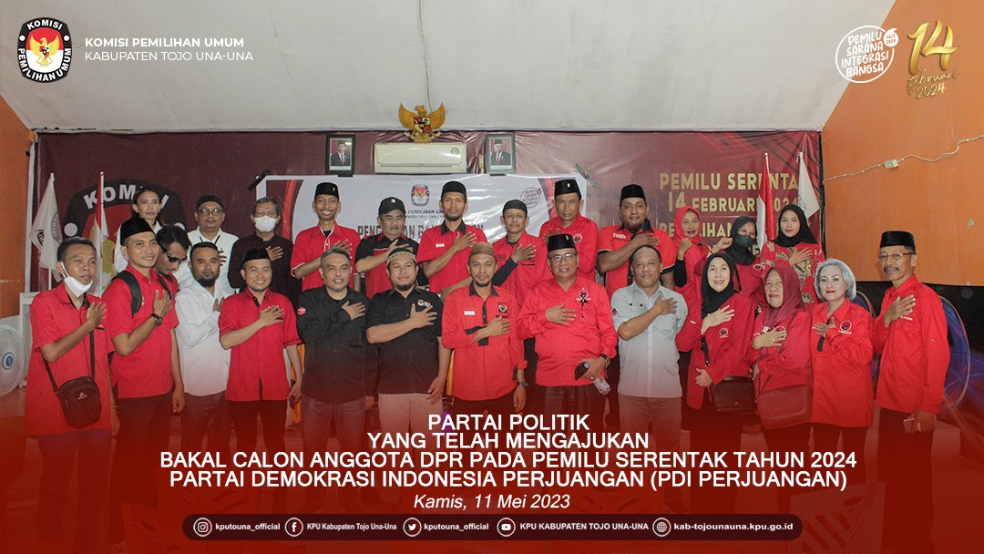 Komisi Pemilihan Umum Kabupaten Tojo Una-Una menerima kunjungan Partai Demokrasi Indonesia Perjuangan (PDI Perjuangan) untuk mengajukan Bakal Calon Anggota DPRD pada pemilu serentak tahun 2024.