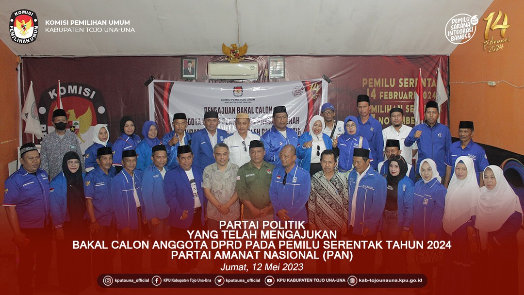 Partai Politik yang telah mengajukan Bakal Calon Anggota DPRD Kabupaten Tojo Una-Una pada Pemilu Serentak tahun 2024. Kamis, 11 Mei 2023
