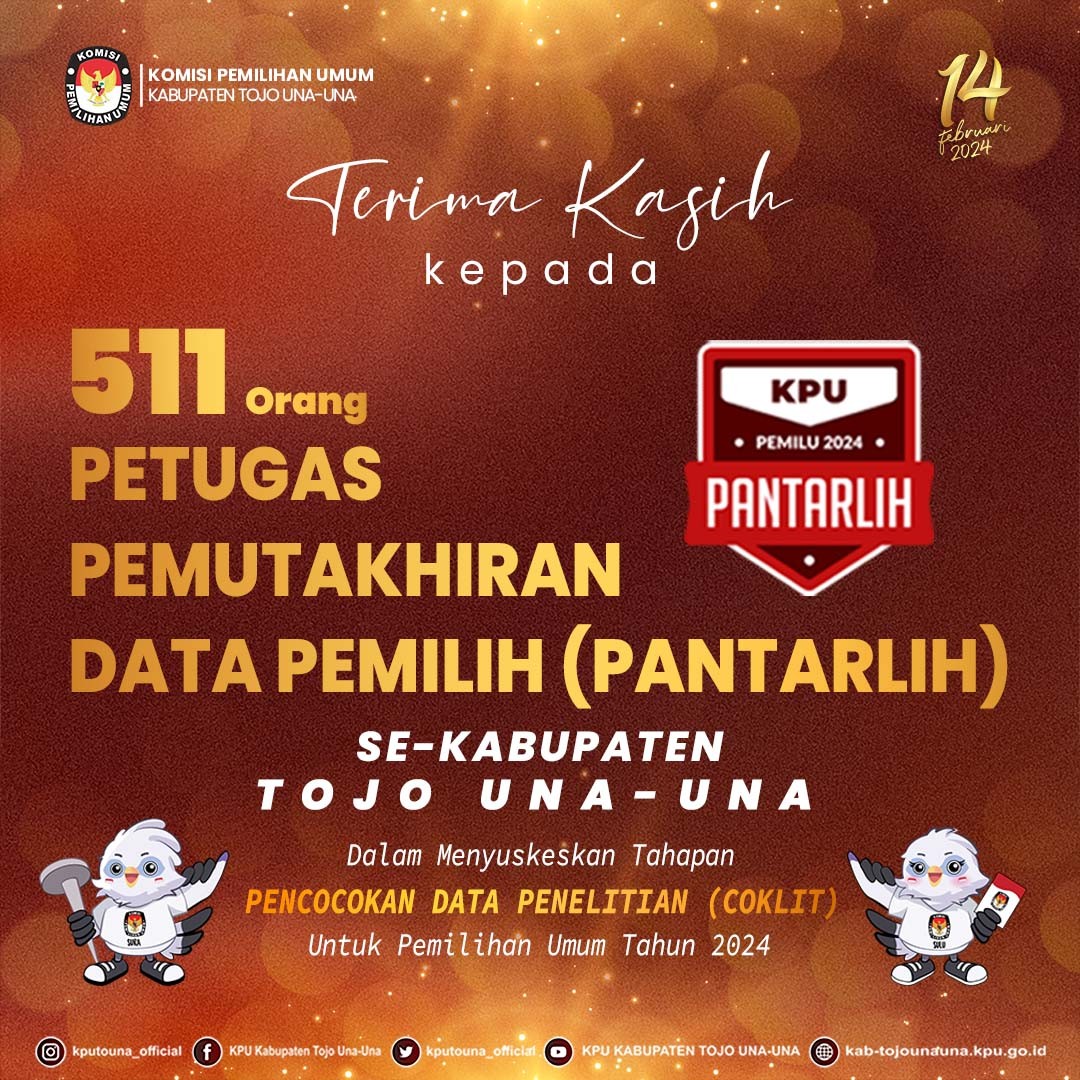 Berdasarkan hasil Rapat Pleno Terbuka, DPSHP tingkat Kabupaten Tojo una-una ditetapkan bahwa total Tempat Pemungutan Suara (TPS) 518 yang tersebar di 12 Kecamatan dan 146 desa/kelurahan , Yakni Jumlah pemilih aktif sebanyak 119,936 jumlah pemilih baru 305, kemudian untuk jumlah pemilih tidak memenuhi syarat sebanyak 854 Sementara untuk jumlah perbaikan data pemilih sebanyak 1.853 serta jumlah pemilih potensial Non KTP-el 4.755.
