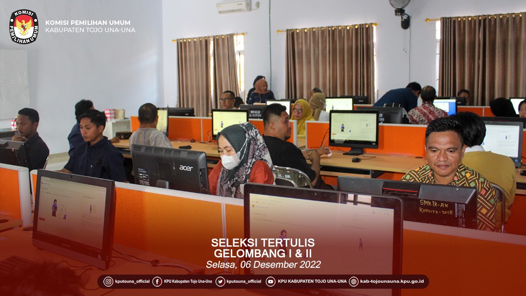 #TemanPemilih, Ketua KPU Kabupaten Tojo Una-Una Dirwansyah Putra, S.I.Kom serta Anggota KPU Ridwan Syarifudin selaku Divisi Sosialisasi, Pendidikan Pemilih, Parmas dan SDM, Anggota KPU Divisi Teknis Penyelenggaraan Sahlan Sabu, S.Pd.I, Anggota KPU Divisi Perencanaan, Data dan Informasi, Sahrul, S.Si memonitoring pelaksanaan seleksi tertulis gelombang I,II dan III bagi calon Panitia Pemilihan Kecamatan (PPK) yang digelar di Laboratorium Komputer SMK Informatika Komputer, Ampana Kota. Rabu (07/12/2022) Peserta calon PPK yang mengikuti seleksi tertulis berbasis Computer Assisted Test (CAT) gelombang I, II dan III ini sebanyak 130 peserta, berasal dari Kecamatan Togean, Una-Una, Batudaka,Talatako, Walea Kepulauan, Walea Besar, Tojo Barat, dan Ulubongka dan dibagi ke 2 ruangan. Turut hadir Staf KPU Provinsi Sulawesi Tengah Masna Lamba, Fitria dan Ario Santana memonitoring Pelaksanaan CAT didampingi Kasubbag Teknis Penyelenggaraan Pemilu partisipasi Hubungan Masyarakat Yultutikce Malaini, Kepala Sub Bagian Keuangan, Umum dan Logistik Fadliani, S.Sos, dan Kepala Sub Bagian Hukum dan SDM KPU Kabupaten Tojo Una-Una Abdul Mutalib, SH serta Para Staf dan Pamdal KPU Kabupaten Tojo Una-Una, dan Bawaslu Kabupaten Tojo Una-Una. #KPUMelayani #PemiluSerentak2024