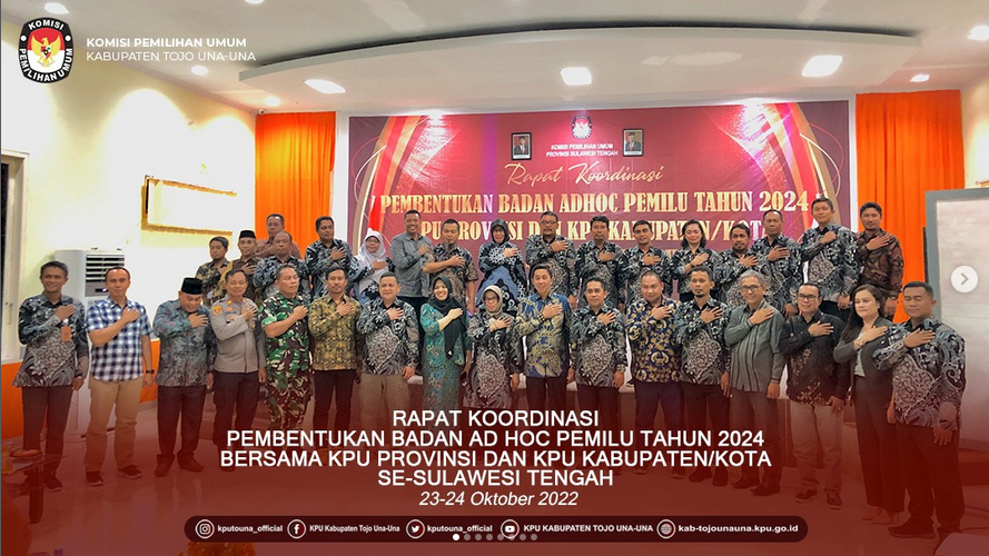 #TemanPemilih, KPU Kabupaten Tojo Una-Una mengikuti kegiatan Rapat Koordinasi (RAKOR) Pembentukan Badan Ad Hoc Pemilu tahun 2024 oleh KPU Provinsi Sulawesi Tengah bersama KPU kabupaten/kota, di Kabupaten Morowali, 23-24 Oktober 2022