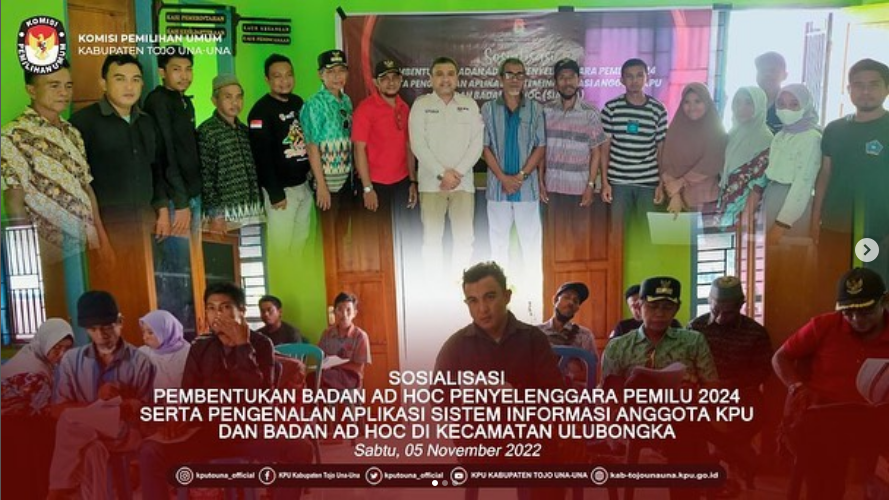 Dihadiri oleh Komisi Pemilihan Umum Kabupaten Tojo Una-Una Anggota KPU Ridwan Syarifudin didampingi Sekretaris KPU Kabupaten Tojo Una-Una Moh. Fitra Akbar, Kepala Sub Bagian Hukum dan SDM KPU Kabupaten Tojo Una-Una Abdul Mutalib serta staf Operator SIAKBA dan SIMPEG Sekretariat KPU Kabupaten Tojo Una-Una Rahman Ilolu.