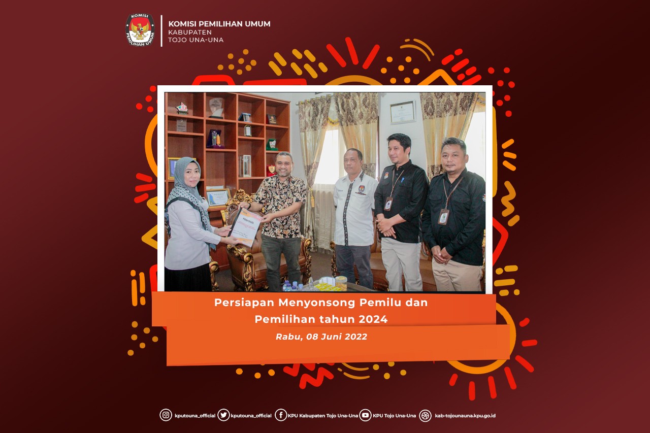 Hi #TemanPemilih, Rabu (08/06) Ketua KPU Kabupaten Tojo Una-Una Dirwansyah Putra, Anggota KPU Ridwan Syarifudin, Sekretaris Moh. Fitra Akbar, SH serta Kasubbag Hukum dan SDM Abdul Mutalib, SH melakukan Koordinasi terkait dukungan infrastruktur oleh Pemerintah Daerah Kabupaten Tojo Una-Una dalam rangka persiapan menyongsong Pemilu dan Pemilihan tahun 2024.