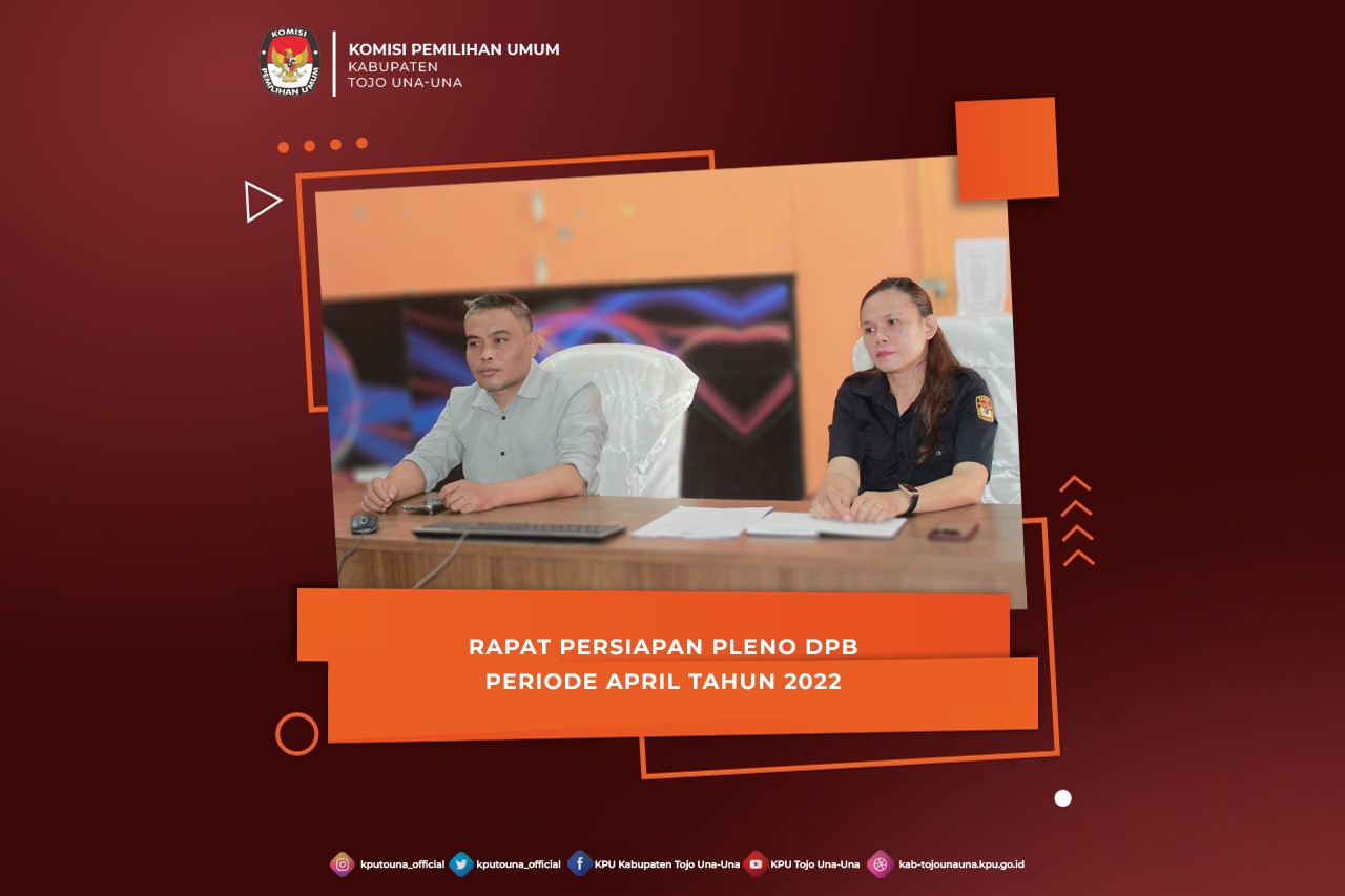 Anggota KPU Kabupaten Tojo Una-UnaKetua Divisi Perencanaan, Data dan Informasi Sahrul, S.Si di dampingi Kasubag Veranica M Paulina, SE mengikuti kegiatan Rapat Persiapan Pleno DPB Periode April Tahun 2022 yang di selenggarakan secara daring oleh KPU Prov. Sulawesi Tengah