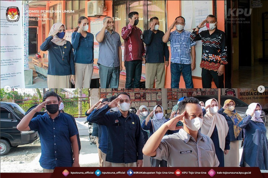 Bertempat dihalaman Kantor KPU Kabupaten Tojo Una-Una, Ketua, Sekretaris, Para Kasubbag dan Staf Sekretariat KPU Kabupaten Tojo Una-Una mengikuti Apel bersama dilanjutkan dengan mengikuti serah terima jabatan Penerimaan Anggota KPU RI Periode 2022- 2027 melalui Zoom ,Selasa 12/4/2022.