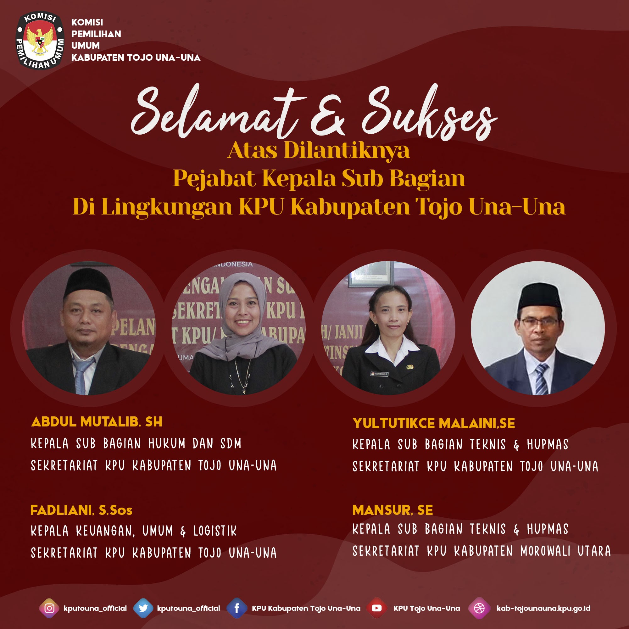 KPU Kabupaten Tojo Una-Una mengucapkan Selamat & Sukses atas Pelantikan Kepala Sub Bagian di Lingkungan KPU Kabupaten Tojo Una-Una dan KPU Kabupaten Morowali Utara.