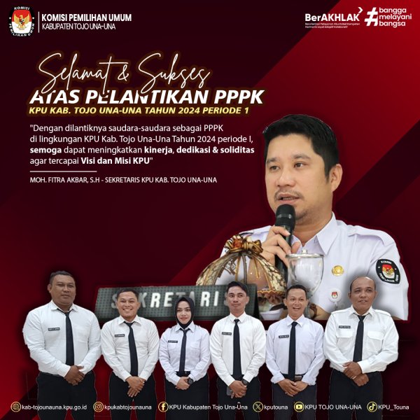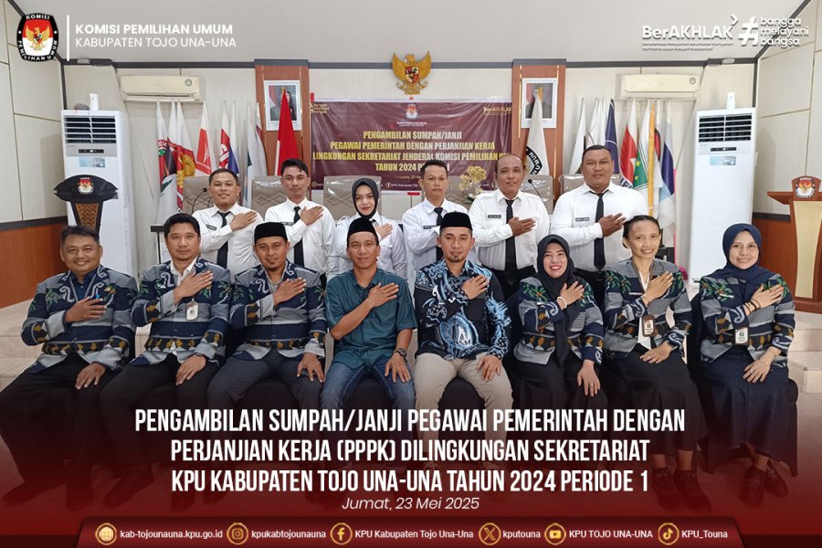 #Temanpemilih, Jumat, 23 Mei 2025 bertempat di Sekretariat KPU Kabupaten Tojo Una-Una Sebanyak 6 Pegawai Pemerintah dengan Perjanjian Kerja (PPPK) di lingkungan Komisi Pemilihan Umum Kabupaten Tojo Una-Una mengikuti pembekalan dan pengambilan sumpah/janji