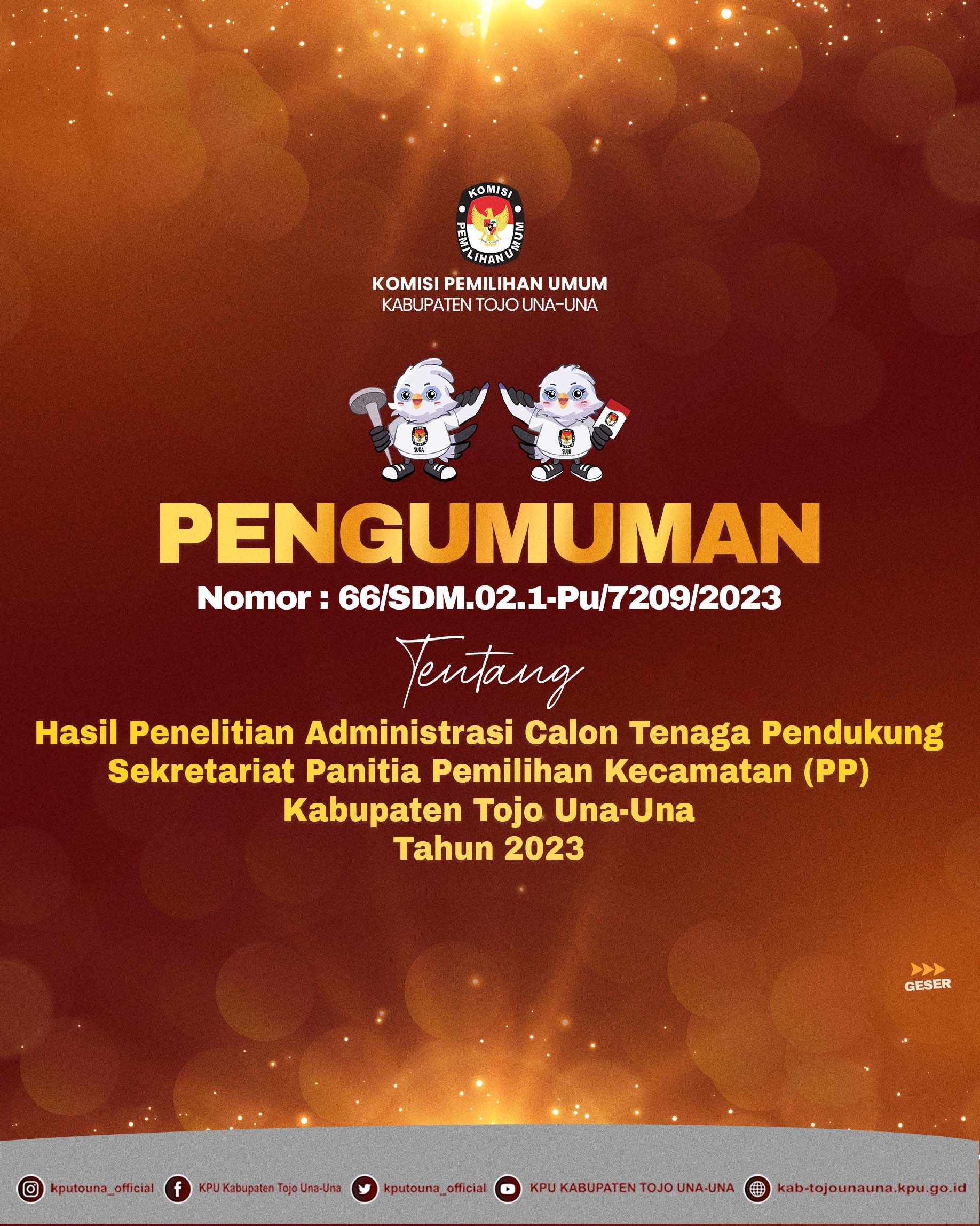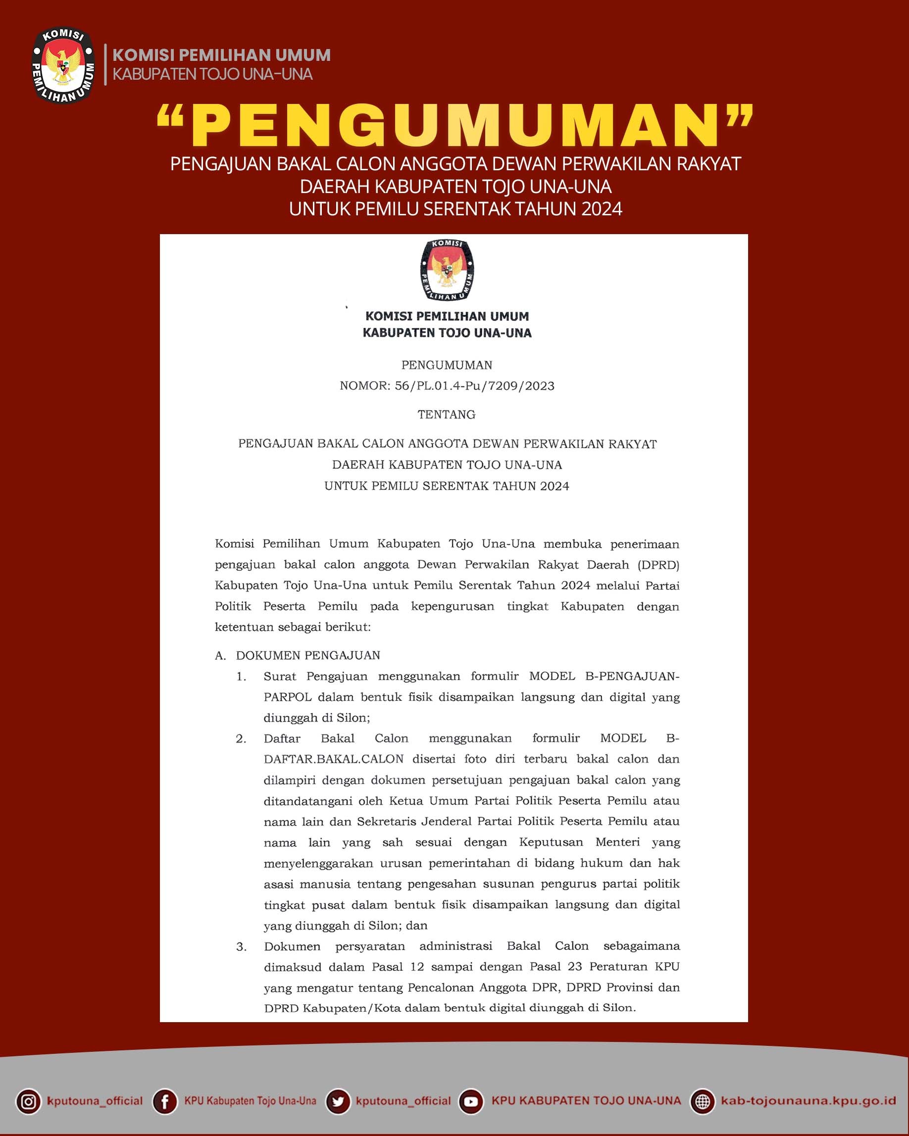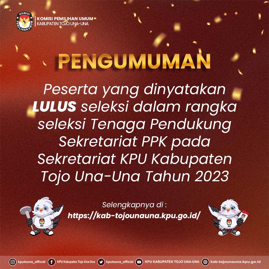 Bedasarkan Keputusan KPU No. 27 Tahun 2023 tentang Pedoman Teknis Penyusunan Daftar Pemilih Dalam Negeri Pada Penyelenggaraan Pemilihan Umum, terkait jadwal kegiatan rekapitulasi DPT tingkat Kabupaten. Oleh karena itu, KPU Kabupaten Tojo Una-Una menggelar Rapat Pleno Terbuka Rekapitulasi DPT Pada Pemilu Tahun 2024 yang dilaksanakan di Hotel Gran Pink Ampana, Selasa (20/6/23).