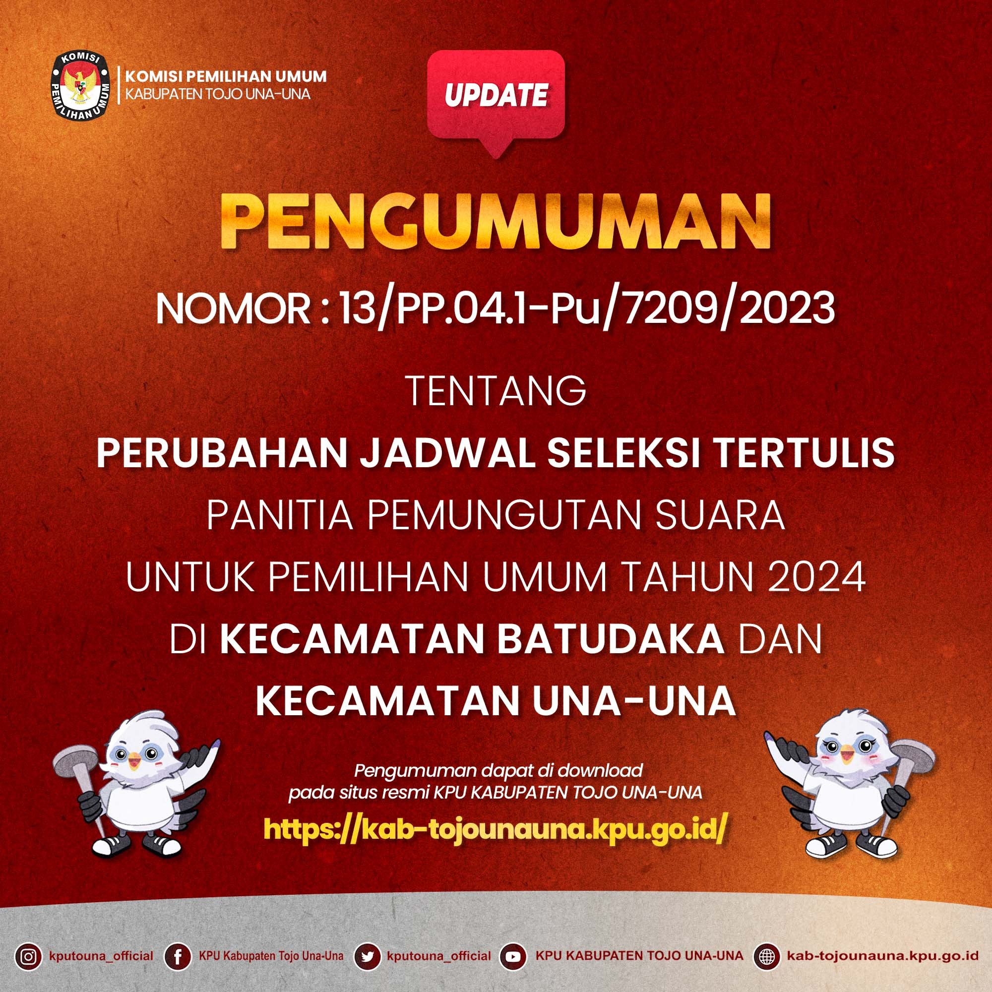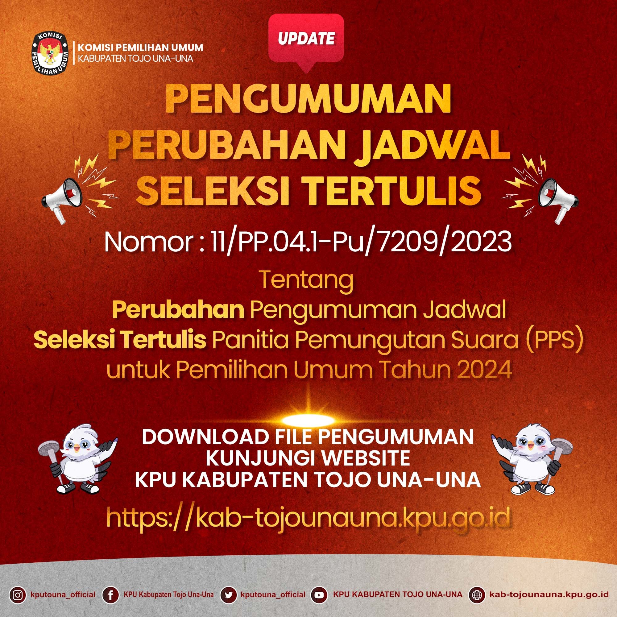 Klik tautan berikut untuk download Perubahan Pengumuman Jadwal Seleksi Tertulis Panitia Pemungutan Suara (PPS) :